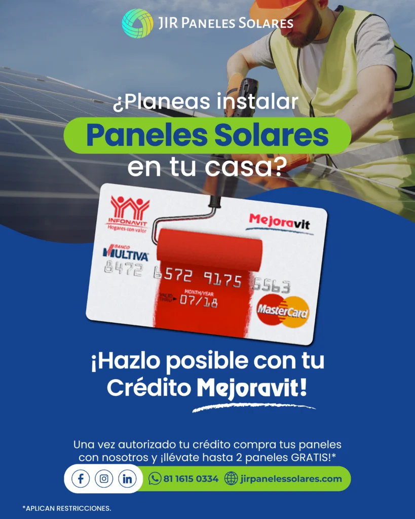 El crédito Mejoravit del Infonavit está pensado para la remodelación de tu hogar. En los últimos años se ha actualizado para poder ser utilizado como una inversión mucho más estratégica y ecológica: la instalación de paneles solares.